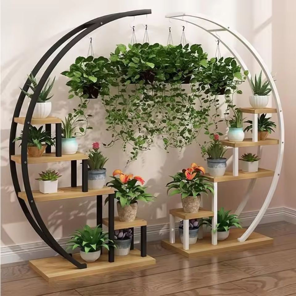 Metal Planters Crescent Shaped Living Room Home Multi-Layer Indoor Space Balcony Decoration Flower Shelf Planter Stand