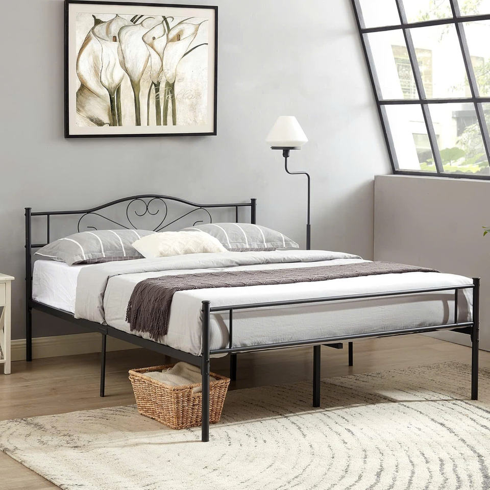 Metal Platform Bed Frame with Headboard, Footboard, Steel Slats Mattress Foundation, No Box Spring Needed, Full Size