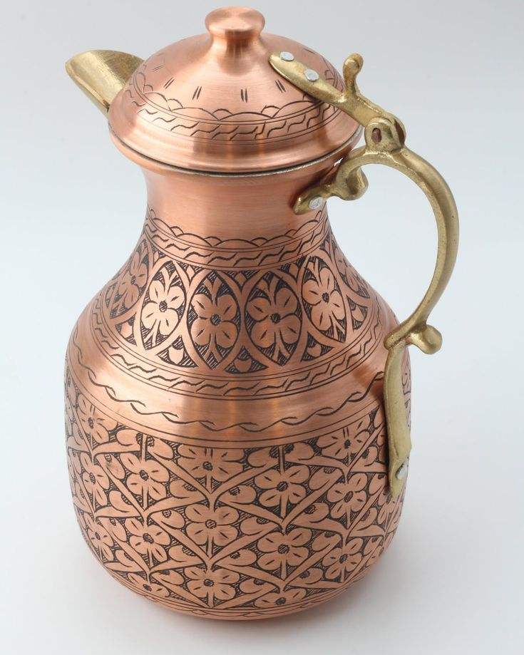 Metal Pure Copper Water Pitcher Approx 60 Fluid Ounce Capacity Flower Design Embossed Metal Material