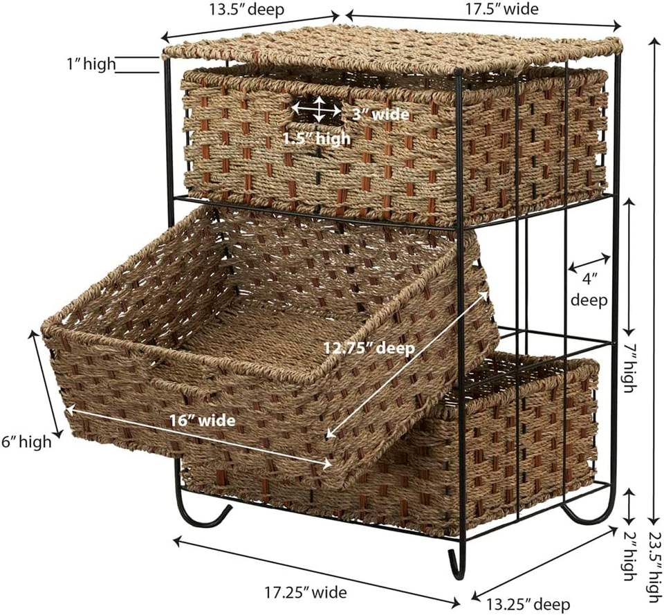 SEAPEARLS SM06 Metal Rack Handwoven Natural Fibers Eco-friendly Durable Rustic Handmade Multi-Drawer Storage Unit for