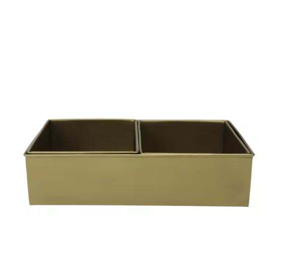 Metal Rectangular Tray with Two Planters Brass Antique Colour Plant Pots Plants Holder for Home & Hotels Decorations