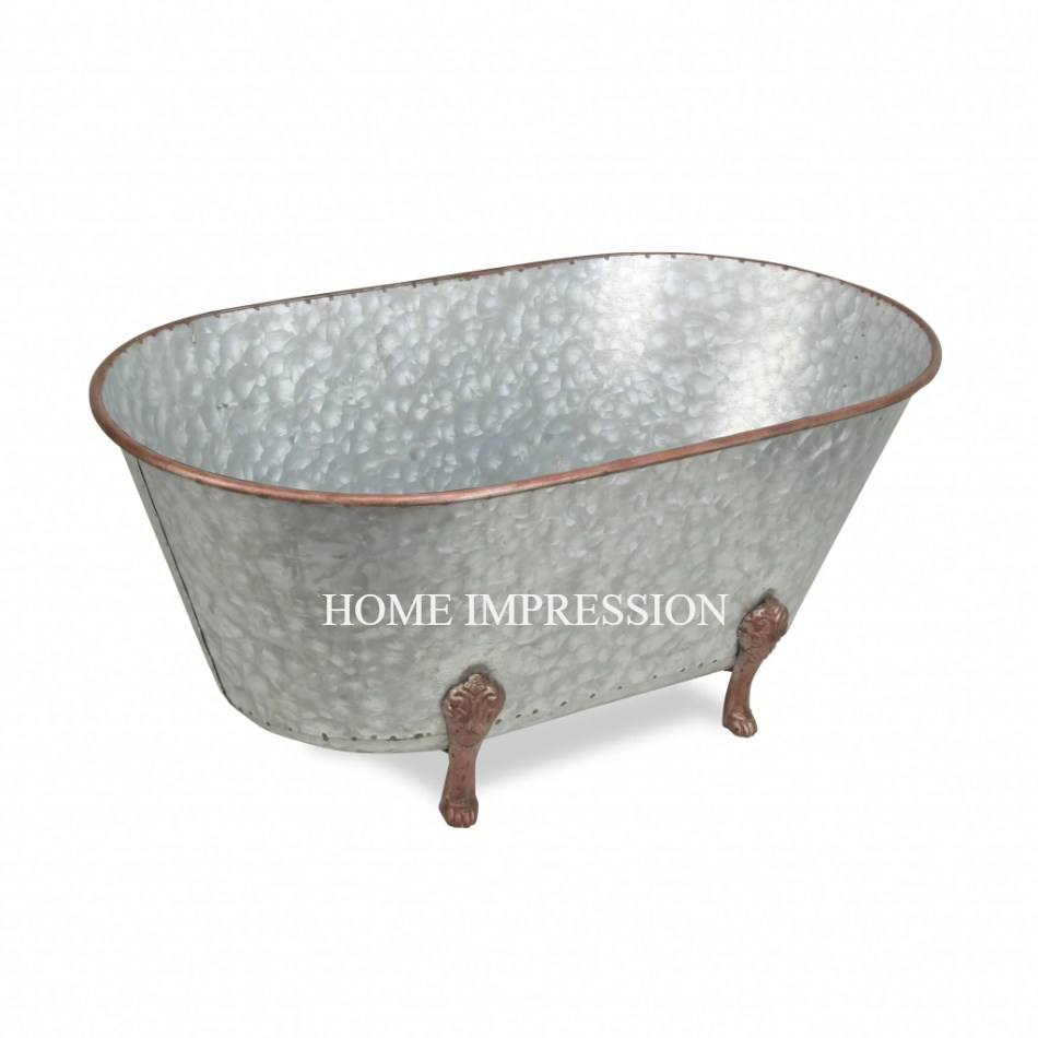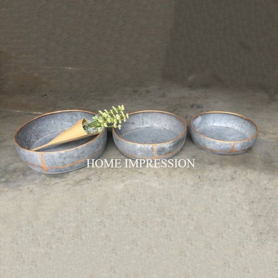Metal Round Flower Bowl Ribbed Herb Grass Planter Set Metal Galvanized Succulent Planter Pot for Home Garden Japanese Style