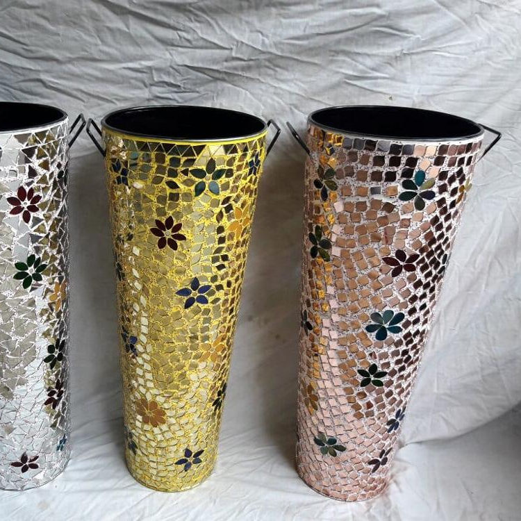 Metal Round Mosaic Decorative Flower Vase Planter