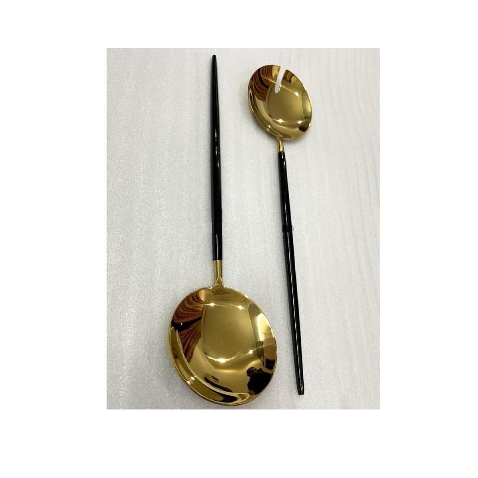 Metal Serving Cutlery Sets for Hotel Custom Size Stainless Steel Salad Spoon & Fork Cutlery Set of 2 With Gold Plated for Home