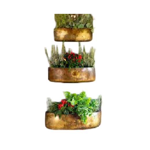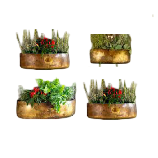 Metal Sheet Wall Hanging Planter With Gold Powder Coating Finishing With Brass Antique Finished Wall Mounted Pot Round Planter