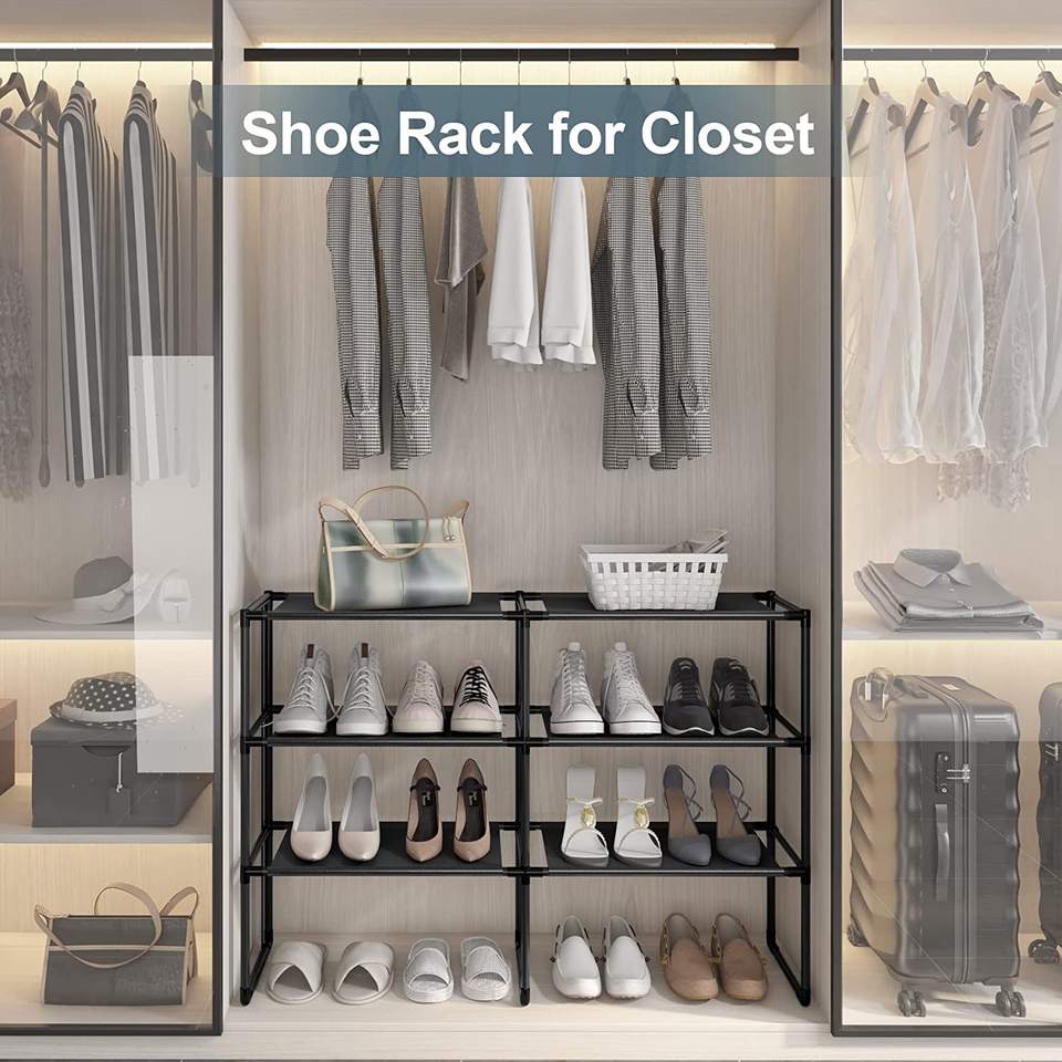 Large Storage Metal Shoe Rack with Removable Side Pockets Entryway Bedroom Hallway Organizer for Heels and Shoes Shoe Cabinet