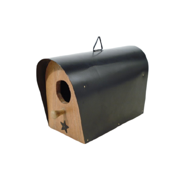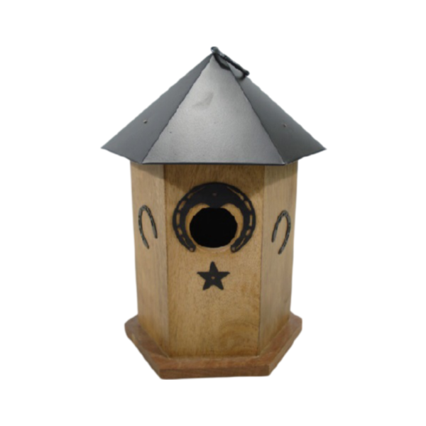 Metal Star & Moon Cut Shape Pattern Wood Bird House With Wood Roof Handmade for Garden Balcony Decorative Wood Bird House