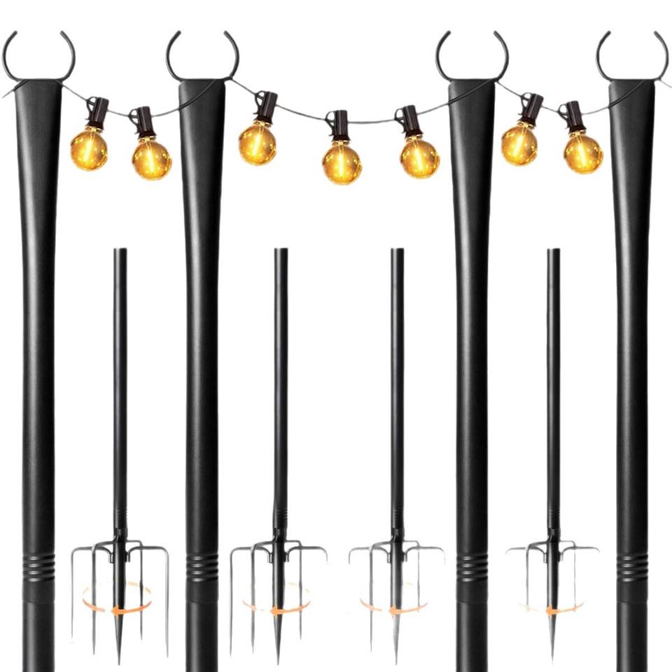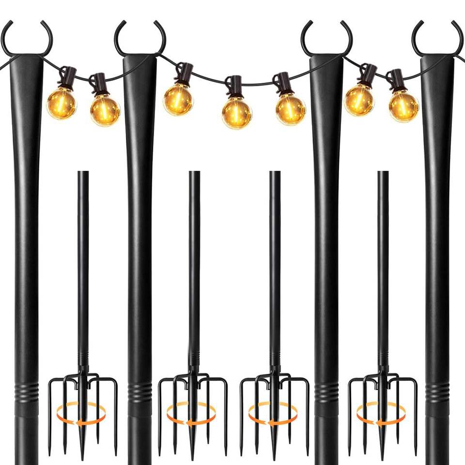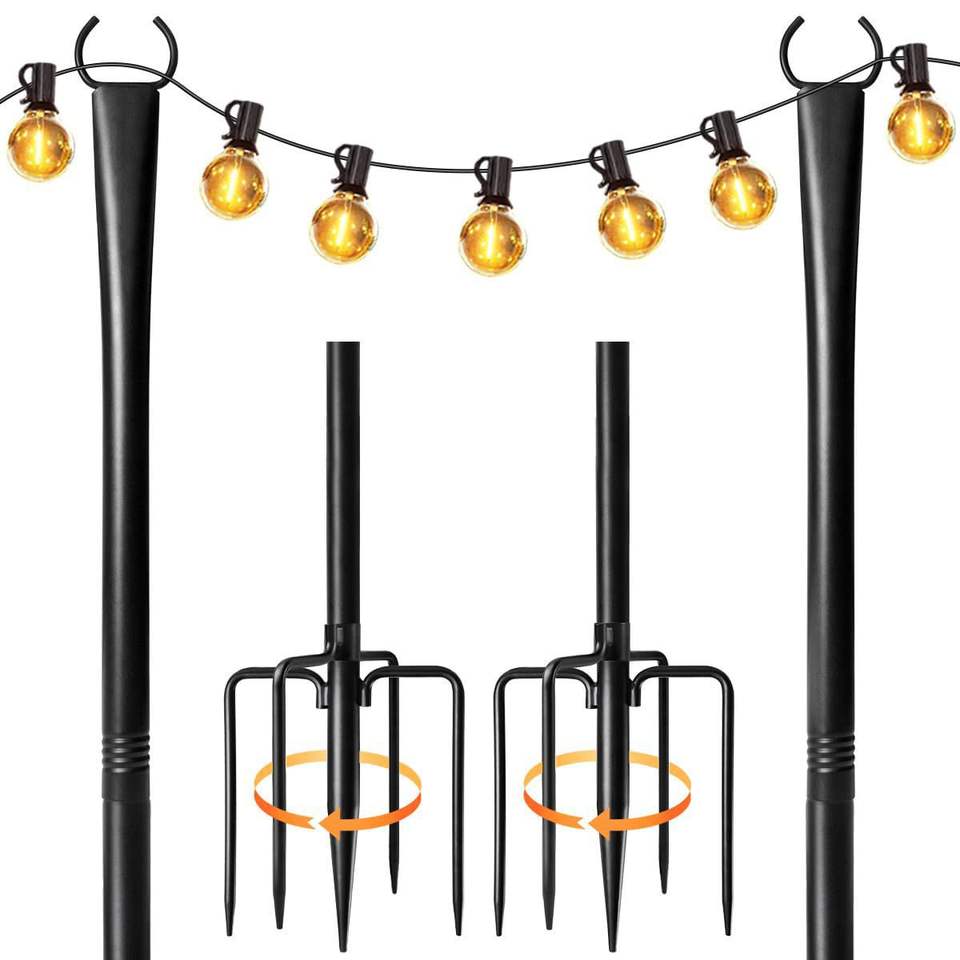 Metal String Light Poles With Adjustable Hooks For Patio Backyard Garden Decoration