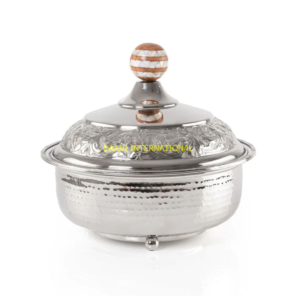 Metal Tajine Casserole with Mughal Cutwork Metal Base Traditional Serving Hotpot with Dome Lid for Curries & Biryani Servings