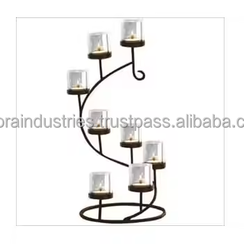 Metal Tealight Holder Candelabra Circular Black Finish with Crystal Votive Stand for Home Decoration