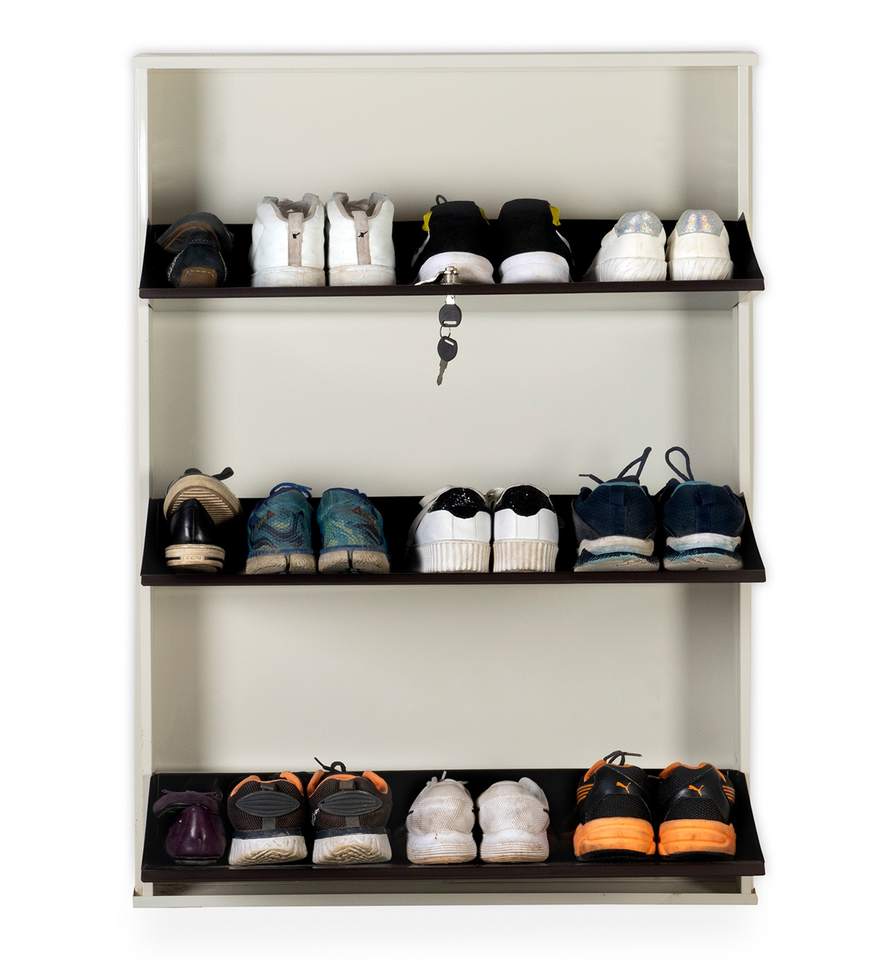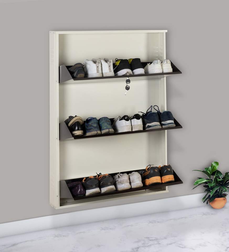 Metal Tilt Out Shoe Rack in Metallic Ivory Wall Mounted Shoe Rack Locker Hallway Spacious Space with Different Heights Entryway