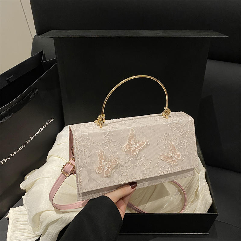 Metal Top Handle Square Handbags Women's Party Purses With Butterfly Decoration Lady Crossbody Shoulder Bag Clutch Purses