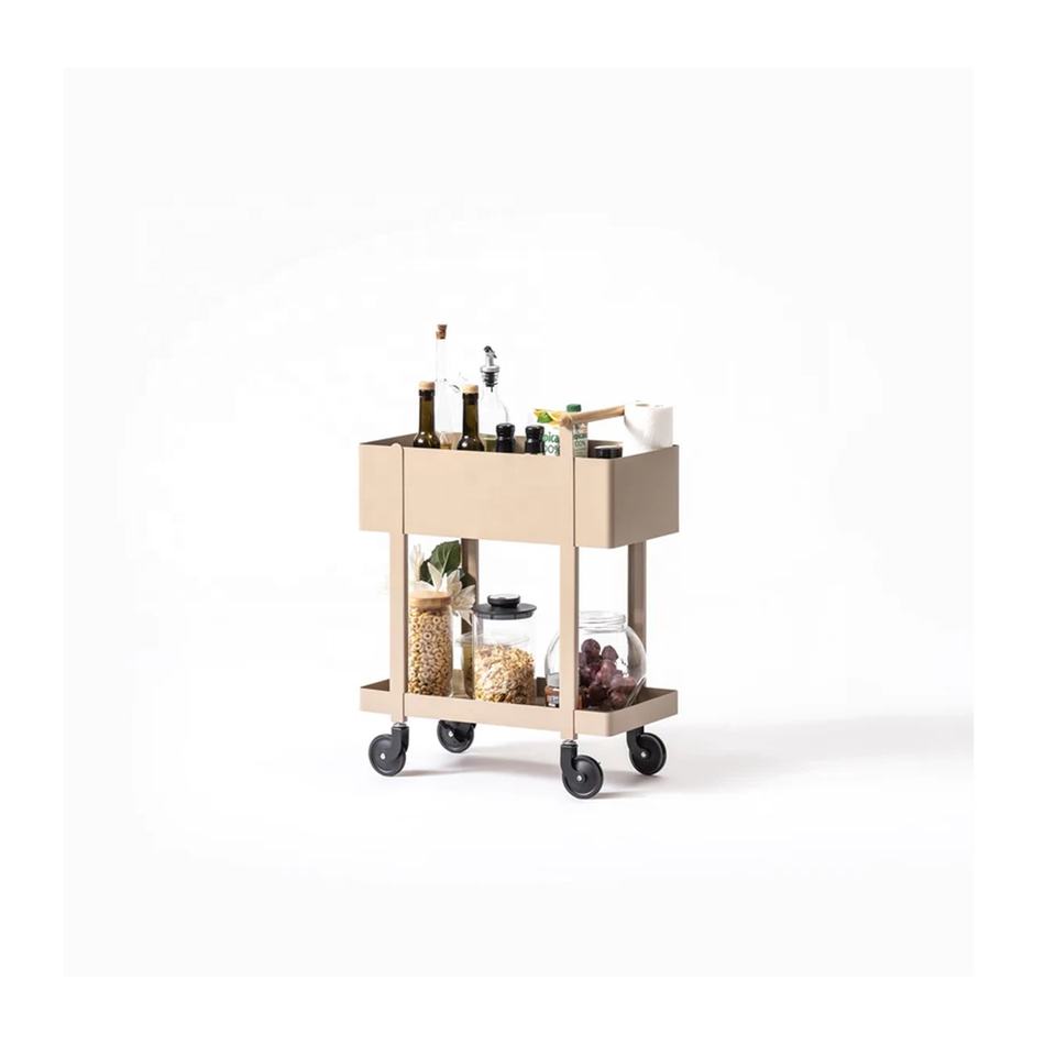 Metal Trolley & Wood Serving Unique Uplifted 2 Level Bar Cart 2 Tiers Smooth Wheels Metal Serving Cart Manufacturer Wholesale