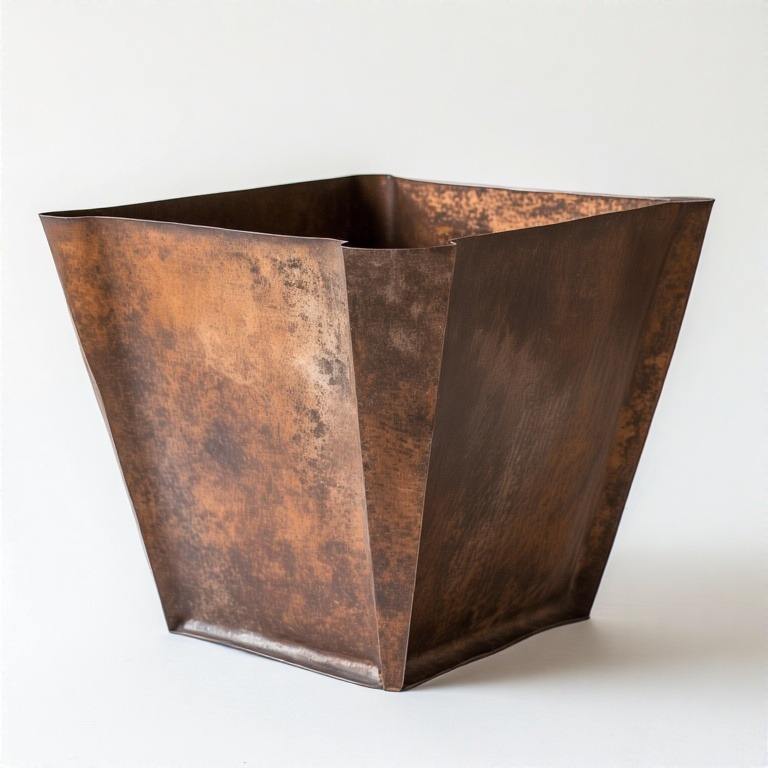 Metal Trough Planter with Hammer-Imprinted Surface and Side Scroll Handles Finished in Vintage Gold for Colonial Verandahs