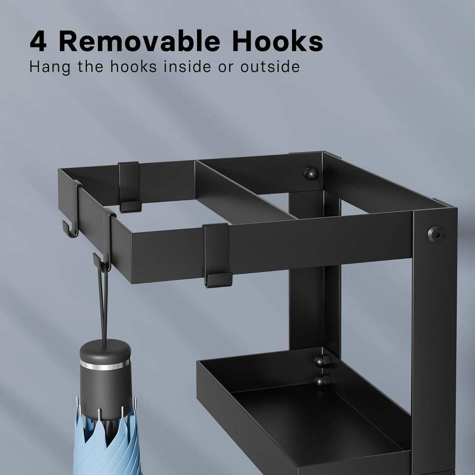 Metal Umbrella Organizer with 6 Hooks Heavy-Duty Umbrella Stand for Indoors & Outdoors Black Industrial Umbrella Holder