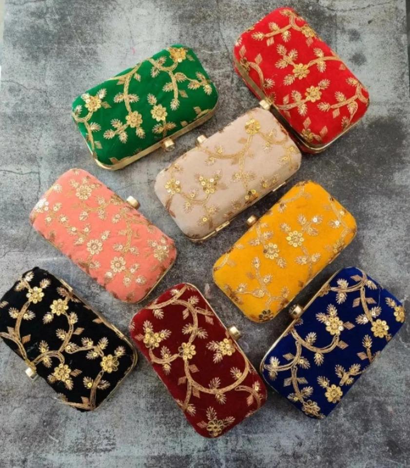 Metal Velvet Embroidered Clutch, Handbags, Indian Wedding Gift, Haldi Mehendi Sangeet Gift Bags, Bridesmaid Gift, Clutch Bag