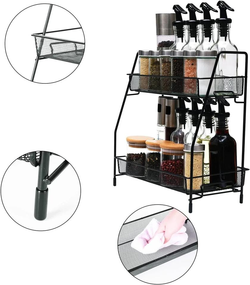 Metal Wall Spice Shelf Countertop Seasoning Organizer Kitchen Storage Rack with Holder Jars Spice Rack for Kitchen Use