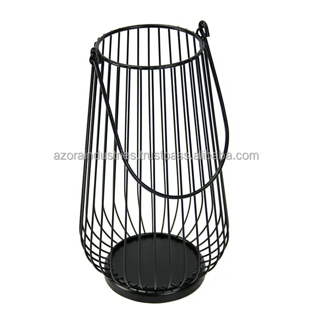Metal Wire Cage Pillar Candle Holder Scented Candle Stand Black Powder Coated Iron Wire Pillar Holder for Holiday