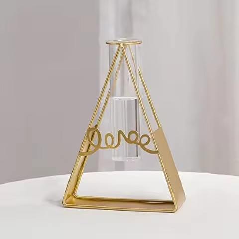Metal Wire Round with Glass Tube & Gold Finished Flower Vase Living Room Table Ware Decorative Flower pot For Home