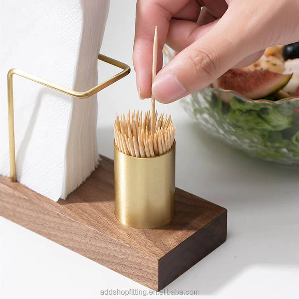 Metal Wooden Rack Stand Paper Dispenser Toothpick Napkin Tissue Holder for Restaurant