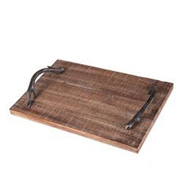 Metal & Wooden Serving Tray With Handle Round Shape for Home & Hotel Tabletop Food & Drinks Serving Trays,
