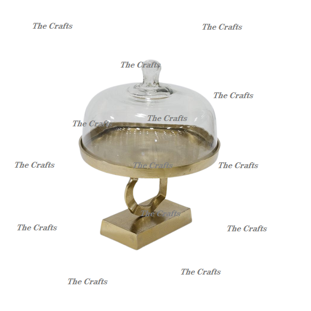 Metal and Glass Dessert Food Serving Cake Stand With Dome Round Shape Snacks Fruits Chocolate Serving Dome
