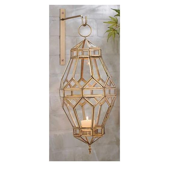 Metal and Glass Votive Candle Holder Lantern With Clear Glass Top Selling Luxury Stainless Steel Wall Hanging