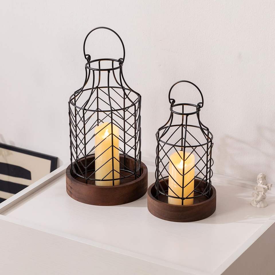 Classic & Modern Black Metal Wood Lantern for Indoor & Outdoor Christmas Decor Trendy Indoor Outdoor Decoration