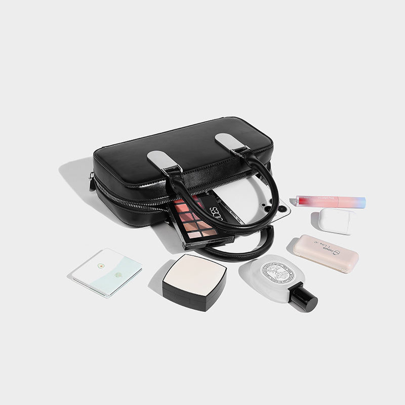 Metal buckle handbag Boston bag Women's fashionable shoulder crossbody small square bag Simple travel bag