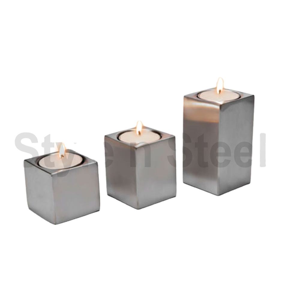 Metal Candle Holders for Home Decor Stainless Steel Square Candle Stand Set of 3 Pcs Luxury T Light Holder