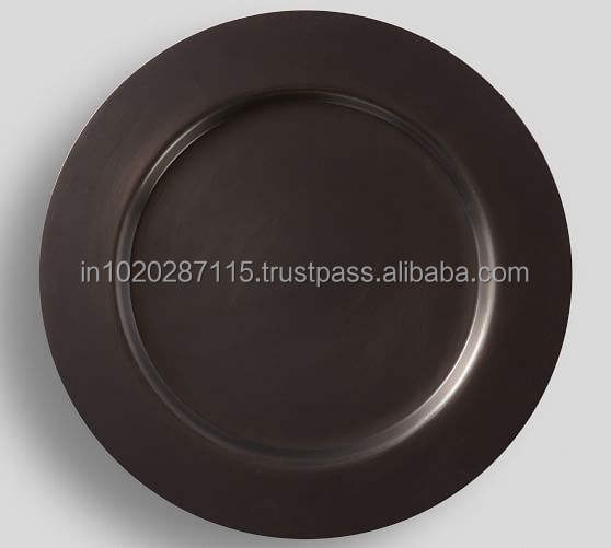 Metal charger plate popular for reception table setup providing charming elegance during wedding dinner celebrations today