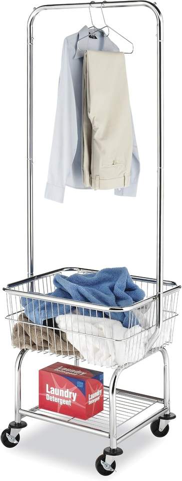 Metal clothing storage rack laundry basket clothes hanger storage cart household shelving unit