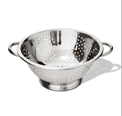 Metal colander with precision cut holes for efficient draining pasta noodles vegetables fruits washing kitchen