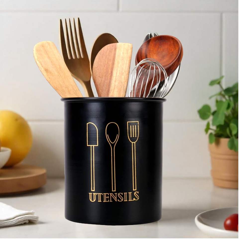 Metal countertop cutlery stand desk and kitchen holder Dining table cutlery organizer Rustic vintage utensil container