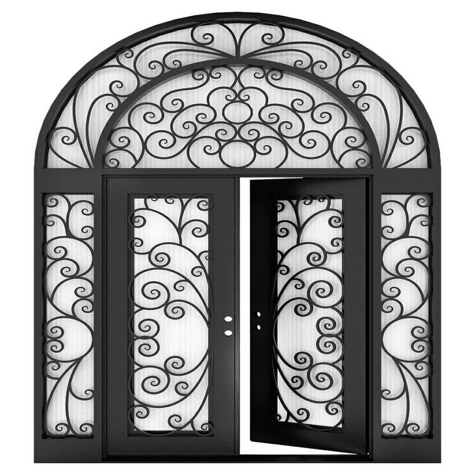 Metal door design for houses with modern wrought iron detail and beautiful garden door models with arches