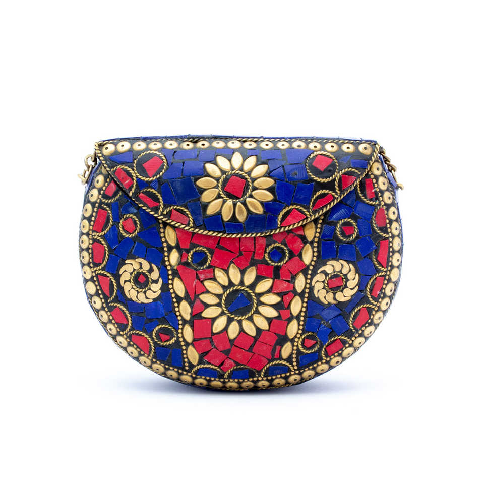 Metal handbag clutch with marble mosaic latest article new arrival here - trending -best seller