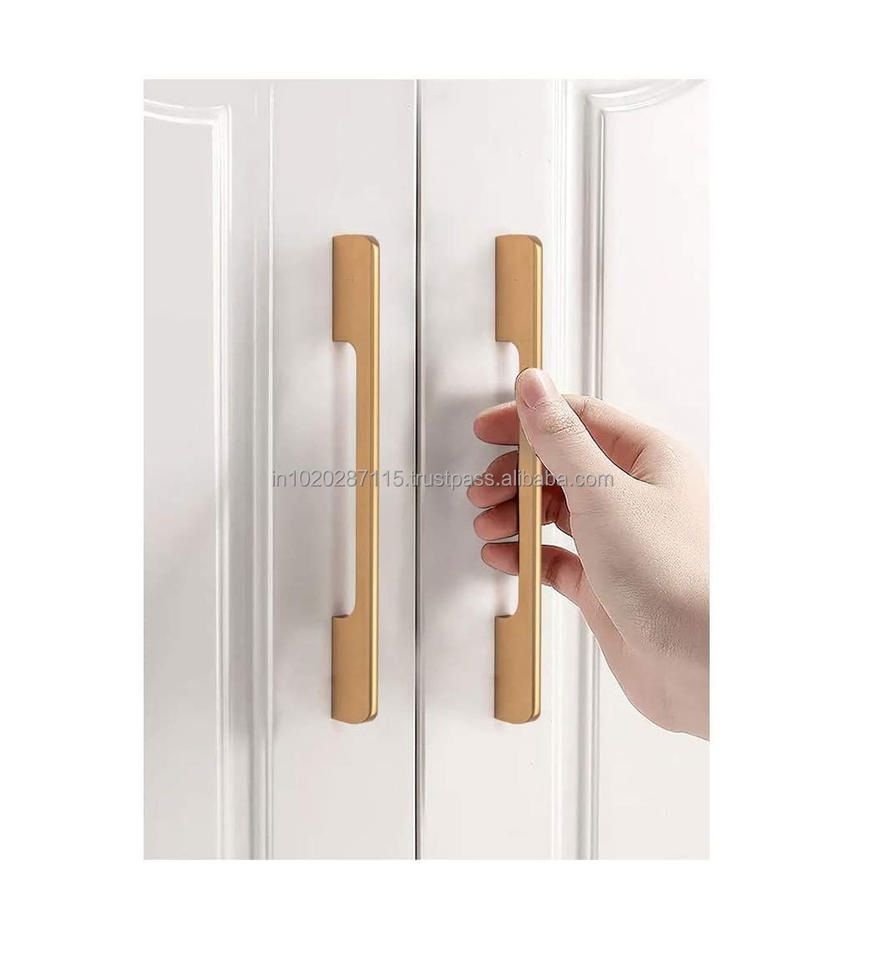 Metal pull handle crafted for wooden wardrobe panels providing strong grip with modern minimalist aesthetic