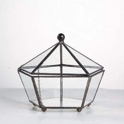 Metal terrarium indoor succulent cactus display holder with transparent glass walls for home decor purpose