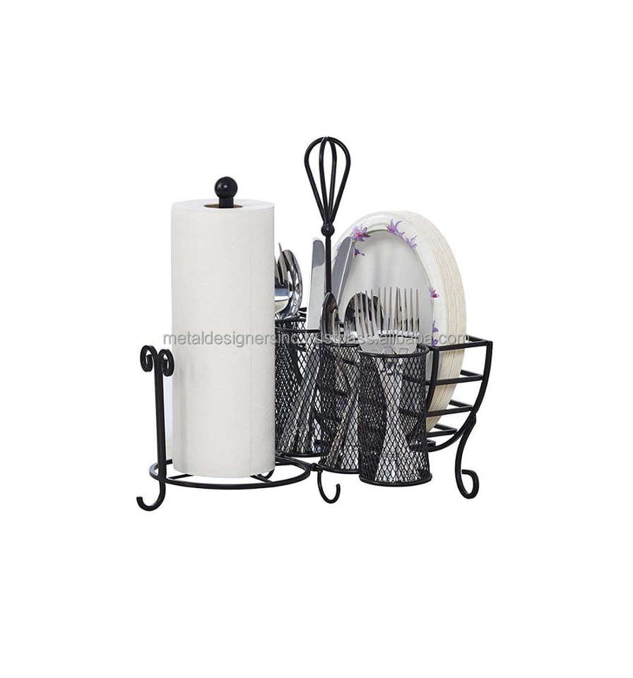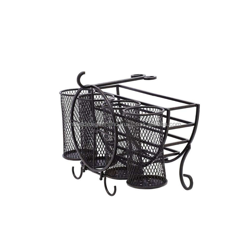 Metal Wire and Net Caddy Kitchen Utensil Black Caddy Holder for Tableware