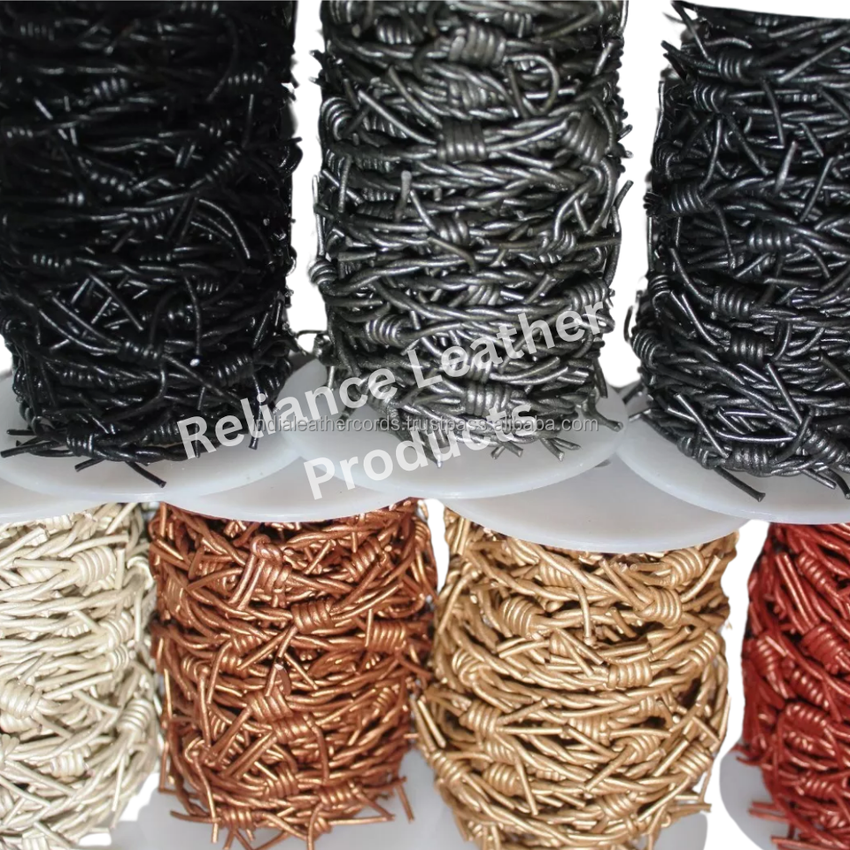 Metallic Finish Leather Barb Wire Cord Gold & Silver Gloss Rope for Custom Necklace Designs & Jewelry Components, Charm