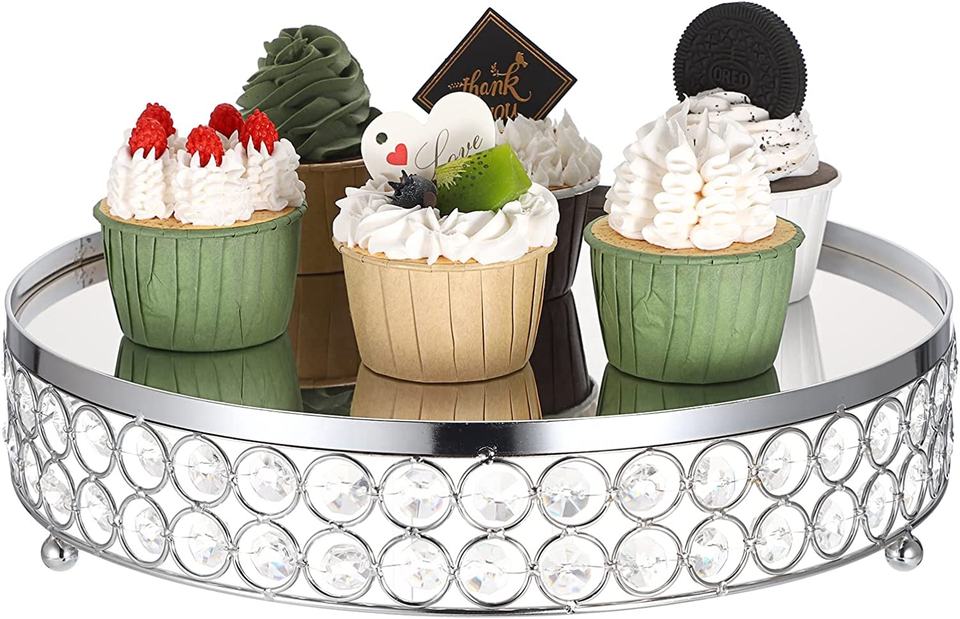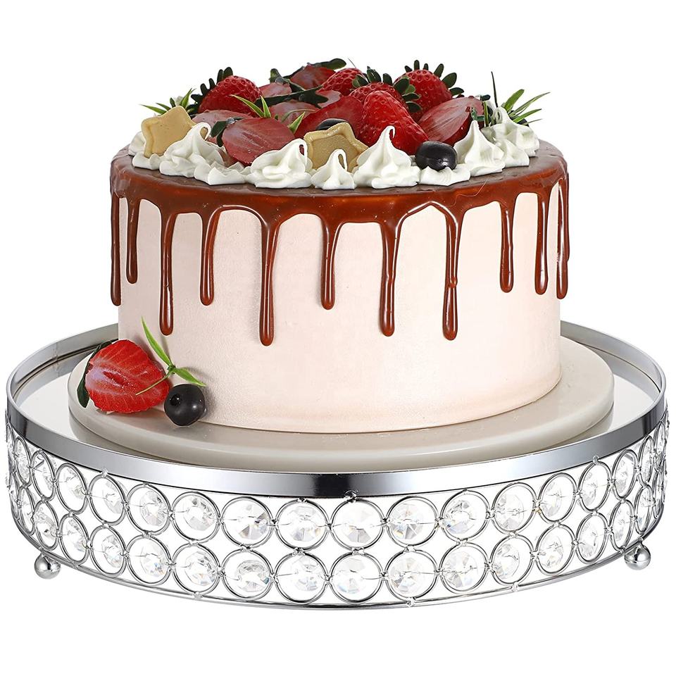 Metallic Frame With Mirror Top Cake Stand Decorative Beaded Cupcake Display Raiser Attentive Structured Cake Displaying Stand