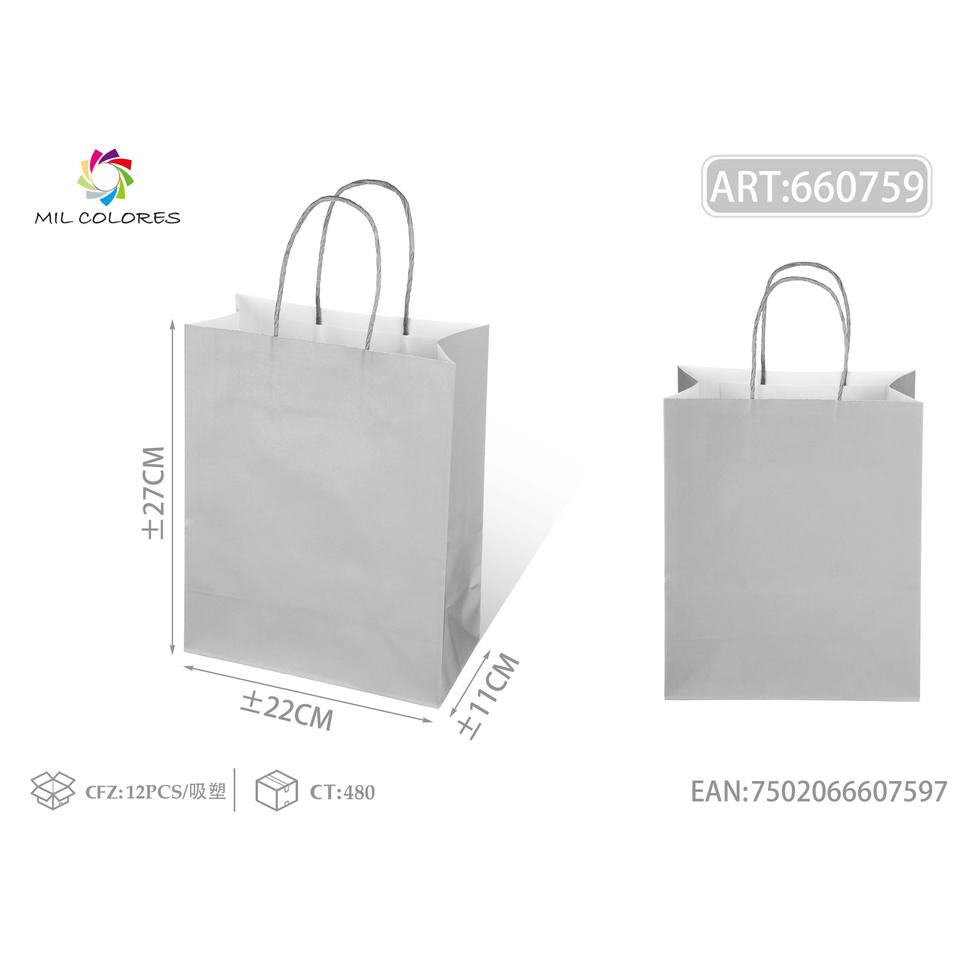 Metallic Silver Cowhide Handbag with Rope 22*27*11cm Shopping Bag