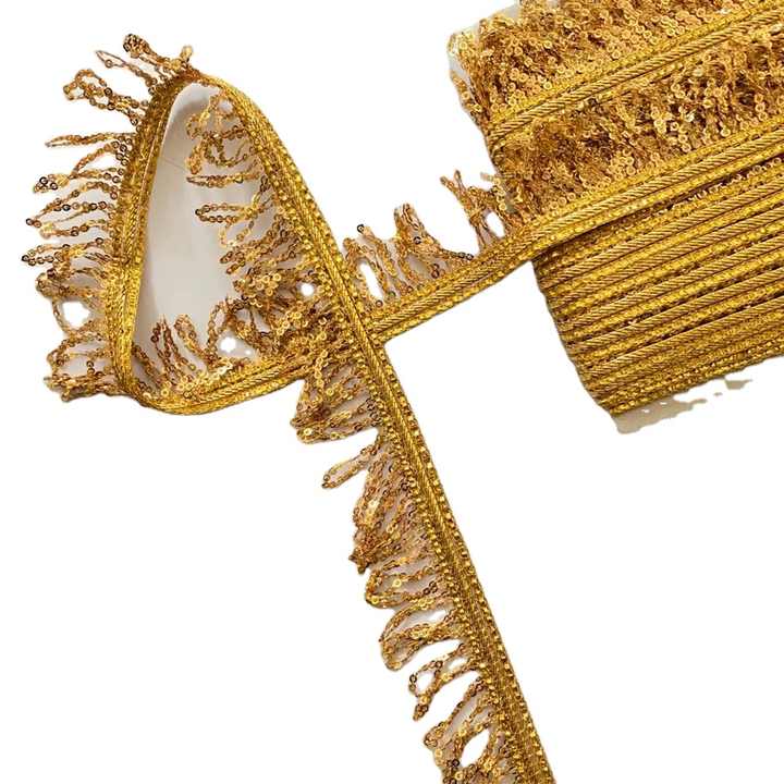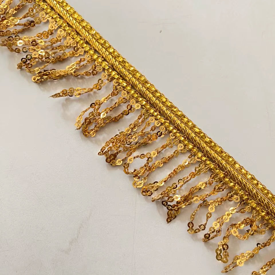 KUSHANG TEXTILE Metallic Width 30cm Single Thread Polyester Sequin Fringe Vertical Tassel Lace Trim Decorative Latin Dance
