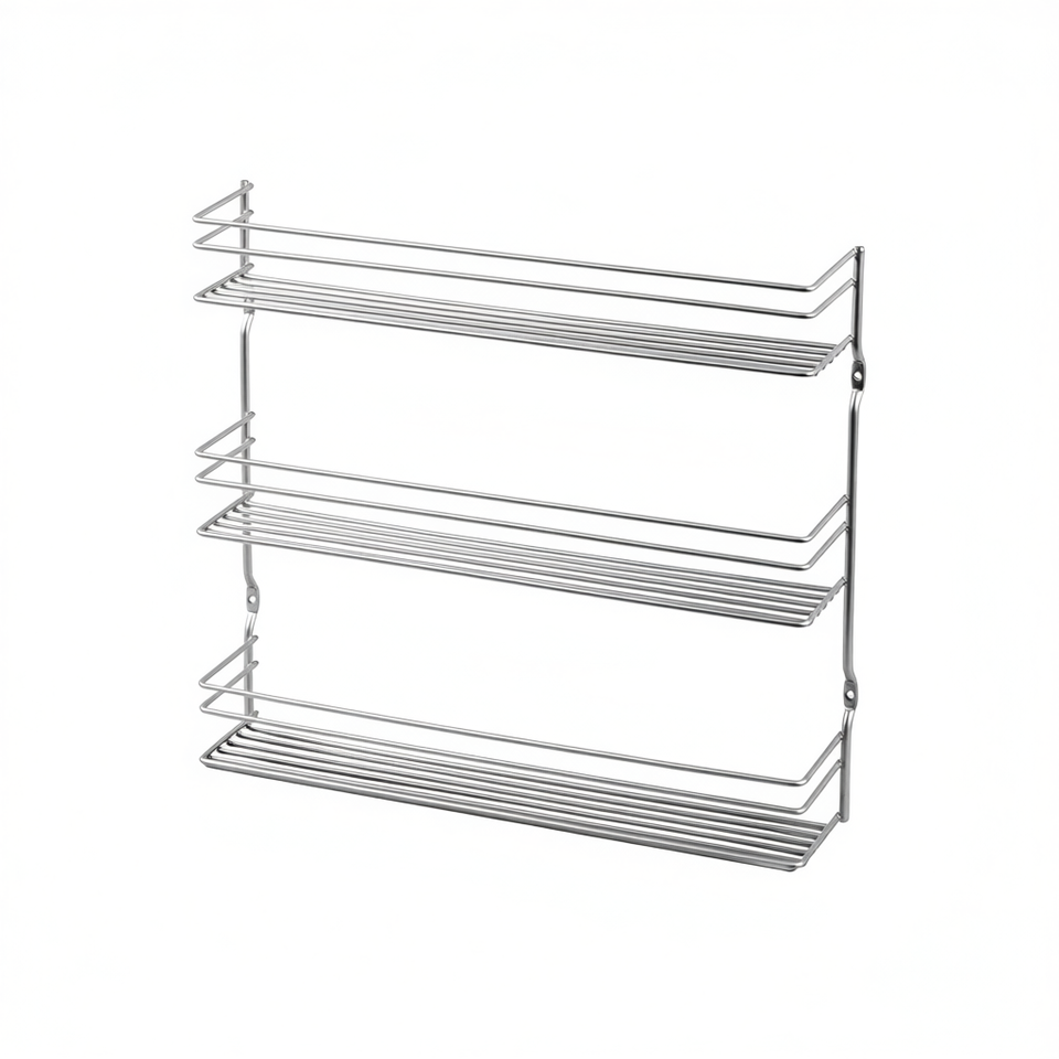 Metaltex Spice Rack 3 Tier Stainless Steel Wall Mount Kitchen Organizer