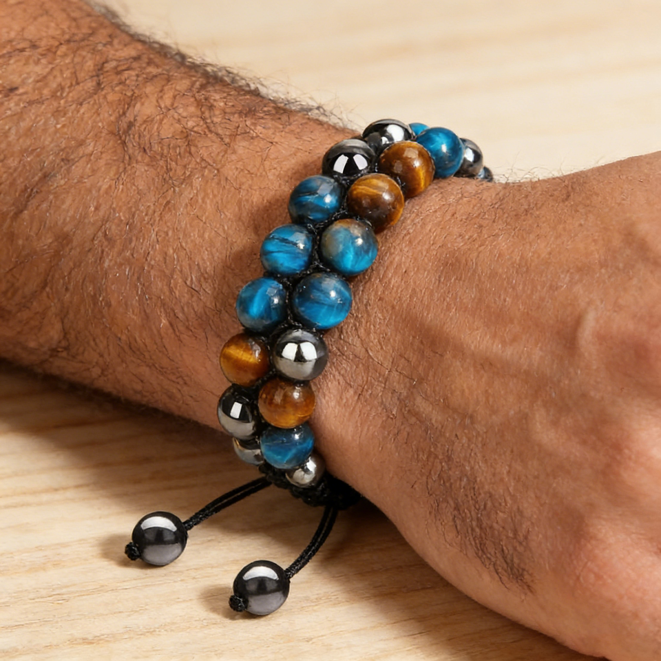 Metaphysical Healing Men's Fashion Natural Tiger Eye Beaded Bracelet, Alloy Hematite Lava Stone Jewelry for Global Distribution