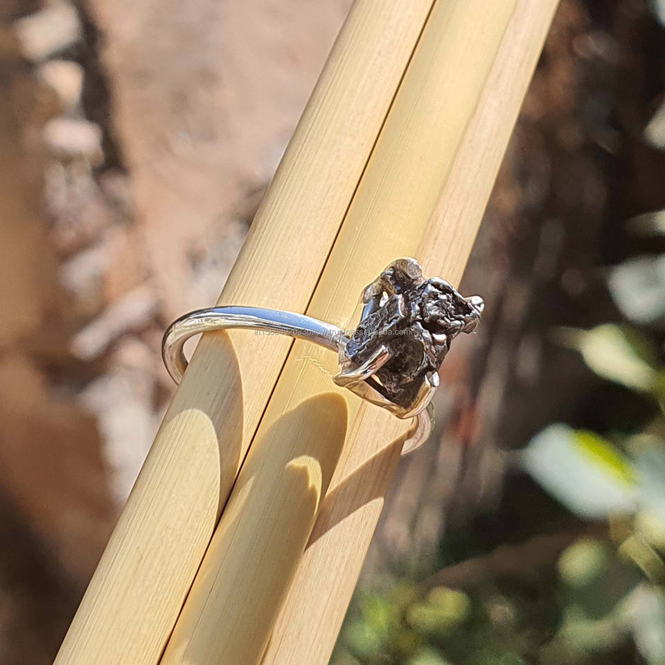 Meteorite Ring 925 Sterling Silver Wholesale Bulk Jewelry Gift for Her Women's Day Handmade Jewelry Rings Raw Meteorite Jewelry