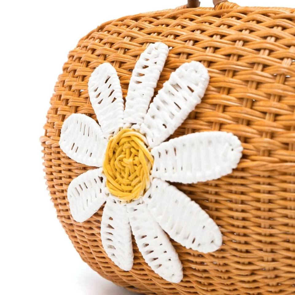 Meticulous Rattan Daisy Flower Handbag New Design Rattan Floral Shoulder Bag Rattan Wicker Clutch