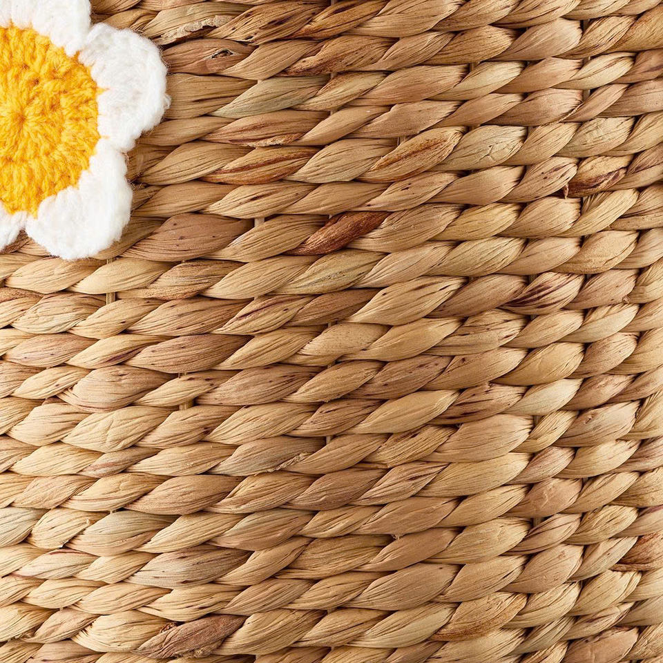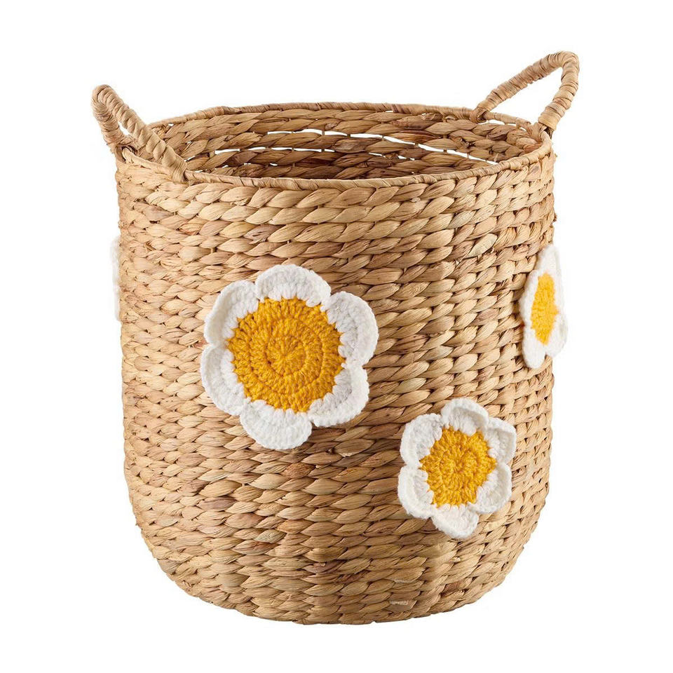 Meticulously Woven Water Hyacinth Basket With Embroidered Flower For Kid Storage & Toy Organization Kid Hamper