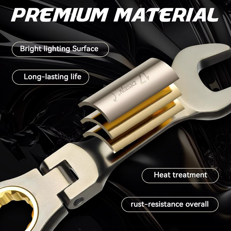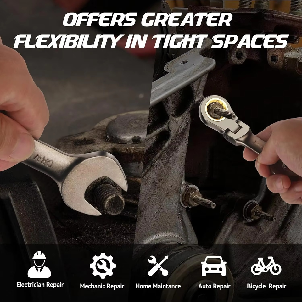 Metric 8-17 mm CRV Nickel Plating Flex Head Stubby Ratcheting Wrench Set DISEN 9-Piece Combination Rolling Pouch