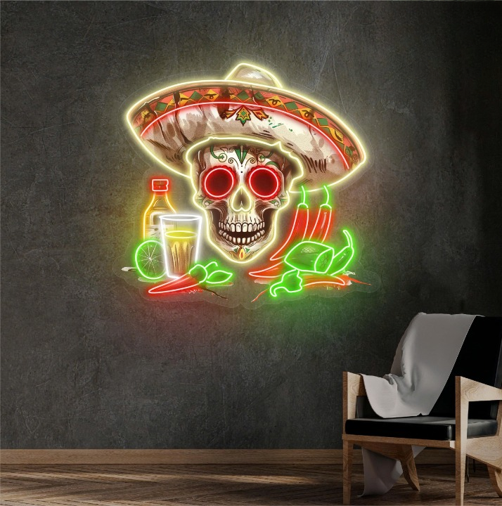 Mexican Food Skull Led Neon Sign Business Neon Sign Light UV-printed Neon Light for Store Decor